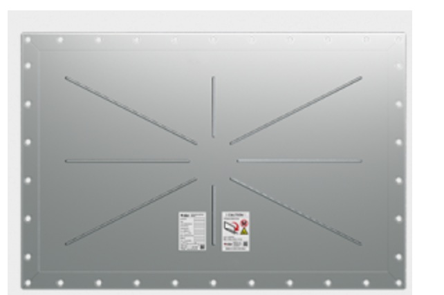 suitable for applications with low operational pressure; for equipment with an operating temperature up to 100 °C; installation without top flange; stainless steel; curved: radius on request; certification according to EN 14797, 2014/34/EU