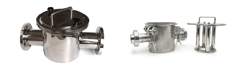 - Magnetic Liquid Traps: These are used for liquids, like sauces or juices, and often use powerful bar magnets inside a housing designed to withstand corrosive environments. It removes ferromagnetic particles, keep the material metal-free, and protect downstream equipment. These traps typically consist of a stainless steel housing that encases a series of high-strength magnetic elements, such as neodymium (NdFeB) or rare-earth magnets. The housing features an inlet and outlet for liquid flow, and the magnetic elements are arranged in a grid or tube configuration to maximize contact with the liquid stream.